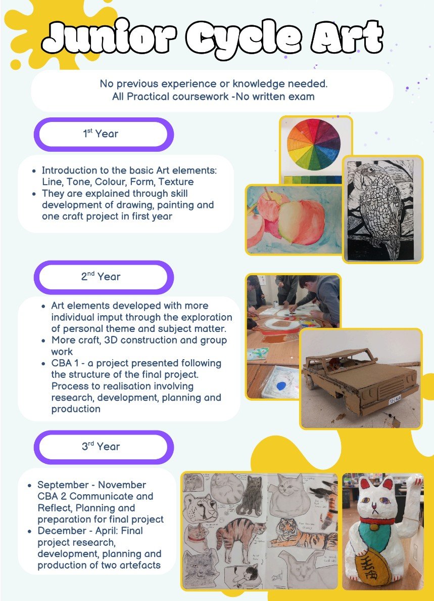 The school's junior cycle programme is broad enough to offer a wide range of learning experiences to all, and flexible enough to offer choice to meet the needs of students.
